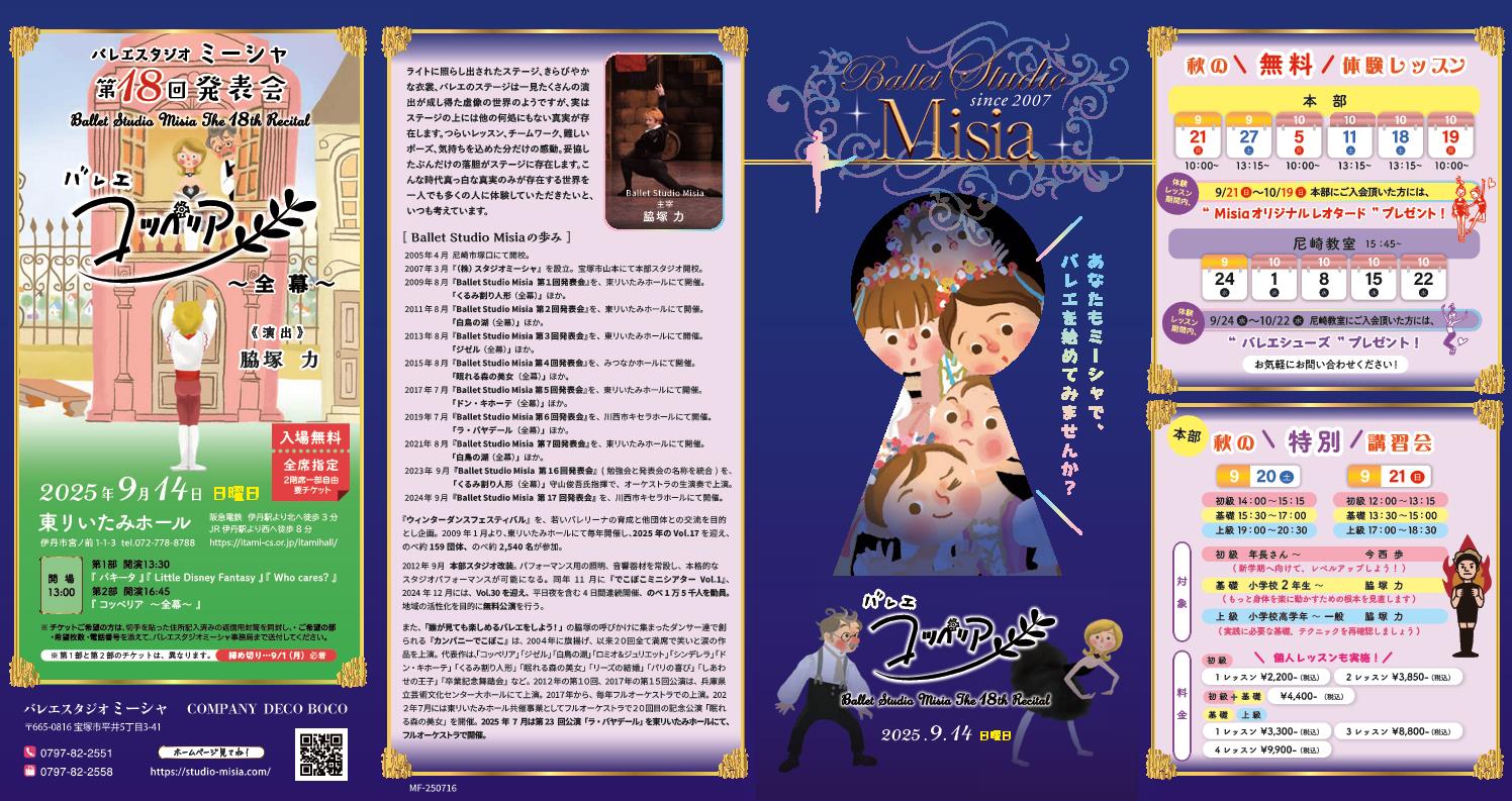 ご希望の方は、・希望枚数(1部.2部の記入も) ・電話番号 ・返信用の封筒 を同封の上、バレエスタジオミーシャに郵送して下さい。